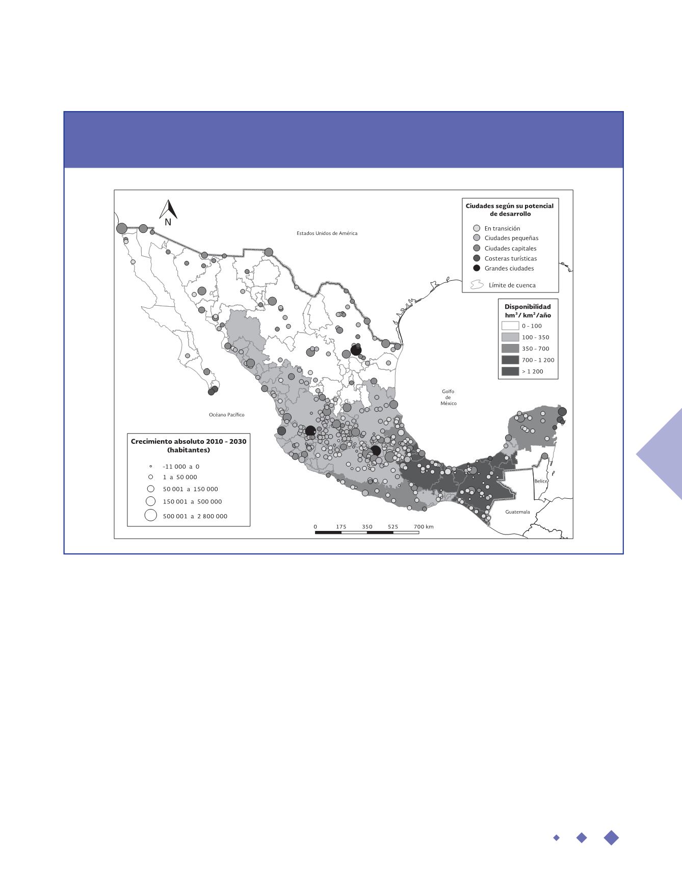México. Crecimientoabsolutodel SistemaUrbanoNacional ydisponibilidadnatural deagua,