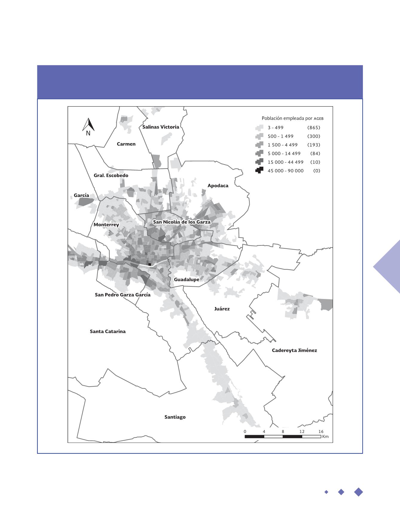 zmdeMonterrey: poblaciónempleadaporageb, 2013