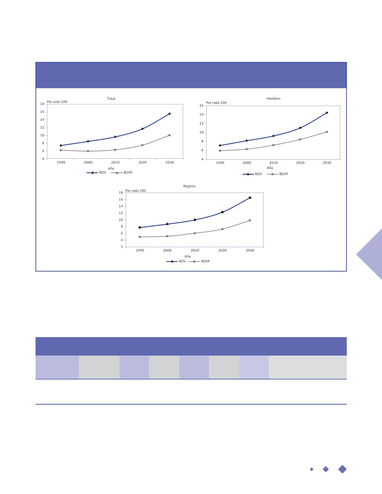 Indicadoresdeenvejecimiento tradicionalesyprospectivospor sexo, 2010